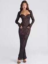Mozision Lace Long Sleeve Sexy Maxi Dress